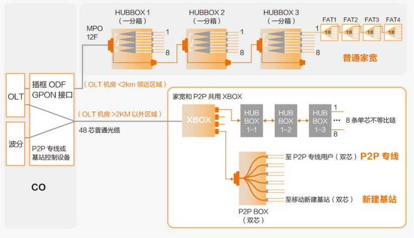 通過ODN 3.0解決方案提供的P2P BOX可以直接輸出雙芯光纜到P2P專線用戶和移動基站,特別適合綜合運(yùn)營商進(jìn)行網(wǎng)絡(luò)布局和充分利用骨干光纜資源。